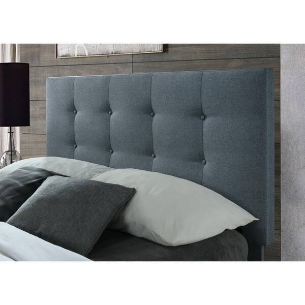 Grey Upholstered Platform Bed with Headboard and Wooden Frame in Full Size