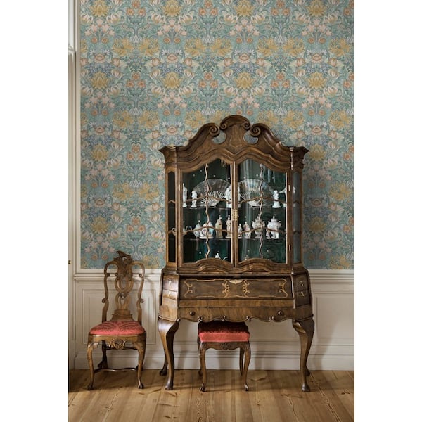 Fleurmont Floral Tapestry Aqua Non-Pasted Wallpaper (Covers 56 sq. ft.)