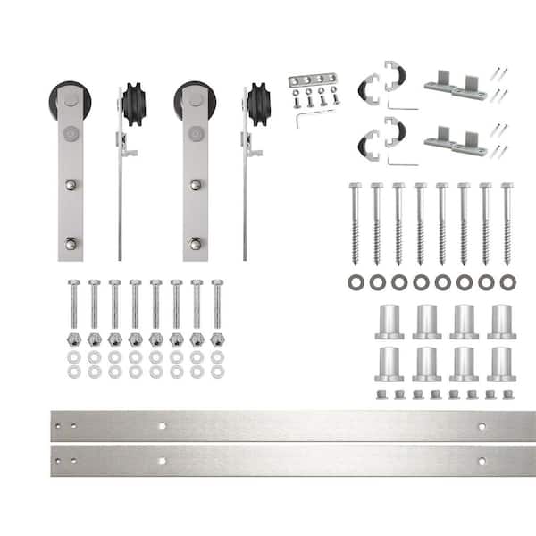 10 ft./120 in. Brushed Nickel Non-Bypass Sliding Barn Door Hardware Kit Straight Design Roller for Double Doors