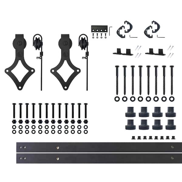 11 ft./132 in. Black Rustic Non-Bypass Sliding Barn Door Hardware Kit Diamond Design Roller for Double Doors