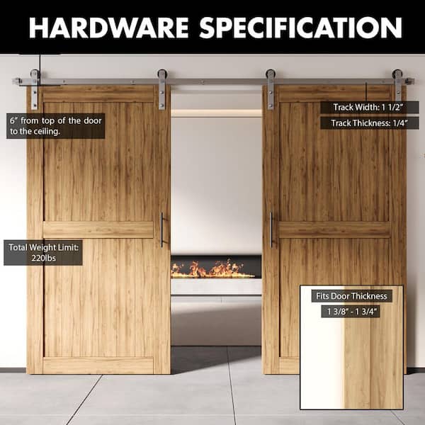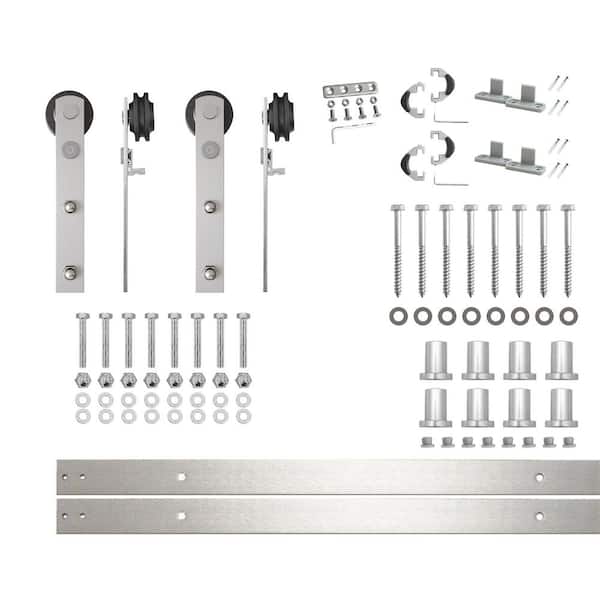 11 ft./132 in. Brushed Nickel Non-Bypass Sliding Barn Door Hardware Kit Straight Design Roller for Double Doors