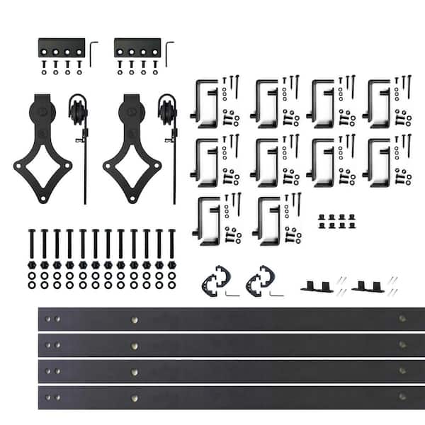 14 ft./168 in. Black Rustic Double Track Bypass U-Shape Sliding Barn Door Hardware Kit - Diamond Design Roller