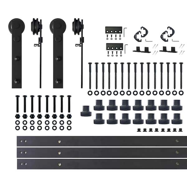 18 ft./216 in. Black Rustic Non-Bypass Sliding Barn Door Hardware Kit Straight Design Roller for Double Doors
