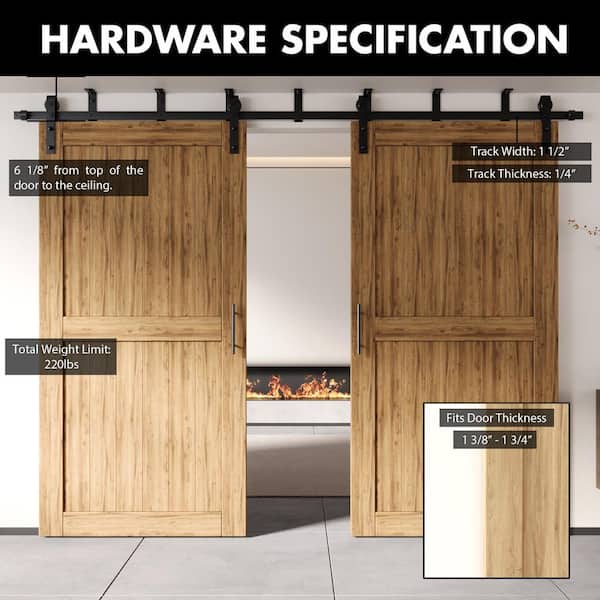 20 ft./240 in. Black Rustic Ceiling Mount Non-Bypass Sliding Barn Door Track and Hardware Kit for Double Doors