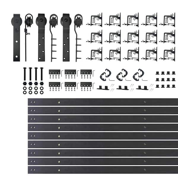20 ft./240 in. Black Rustic Inverted Bent Triple Track Bypass Sliding Barn Door Track and Hardware Kit for Triple Doors