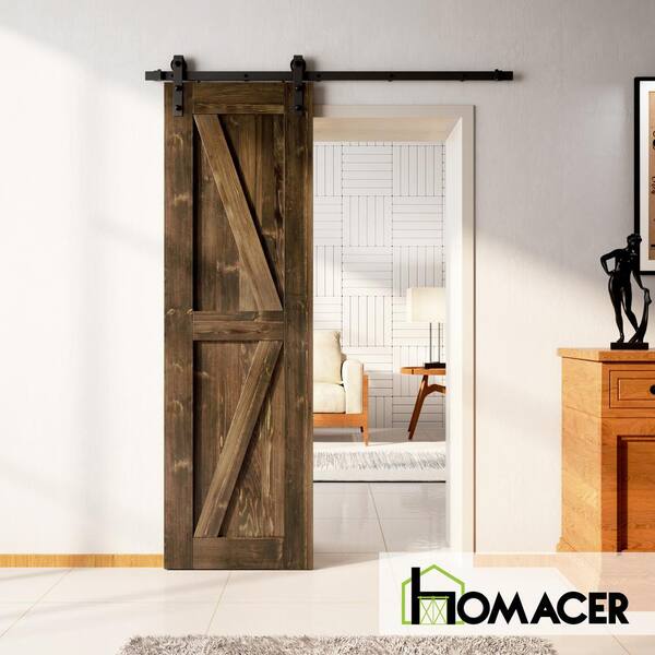 20 in. x 80 in. 5-in-1 Design Walnut Solid Natural Pine Wood Panel Interior Sliding Barn Door Slab with Frame