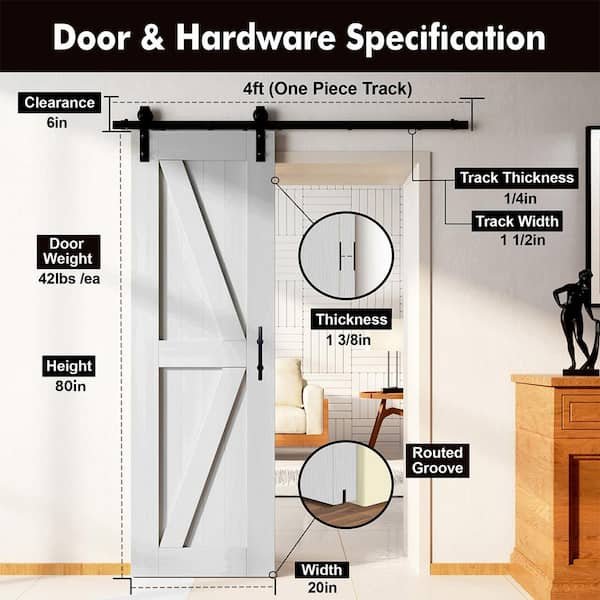 20 in. x 80 in. 5-in-1 Design White Solid Pine Wood Interior Sliding Barn Door with Hardware Kit, Non-Bypass