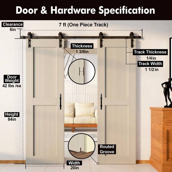 20 in. x 84 in. H-Frame Tinsmith Gray Double Pine Wood Interior Sliding Barn Door with Hardware Kit Non-Bypass