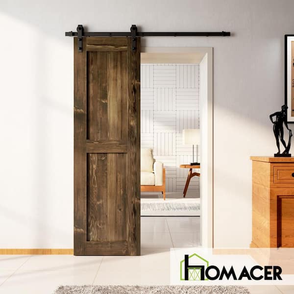 20 in. x 84 in. H-Frame Walnut Solid Natural Pine Wood Panel Interior Sliding Barn Door Slab with-Frame