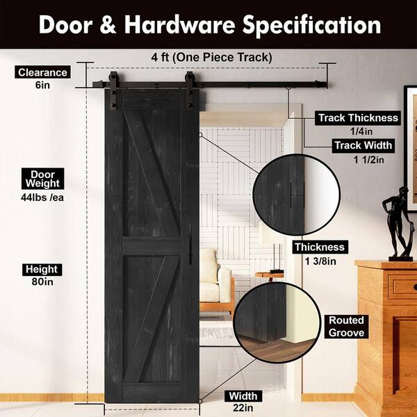 22 in. x 80 in. 5-in-1 Design Black Solid Pine Wood Interior Sliding Barn Door with Hardware Kit, Non-Bypass