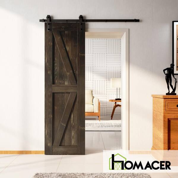 24 in. x 84 in. K-Frame Ebony Solid Natural Pine Wood Panel Interior Sliding Barn Door Slab with Frame