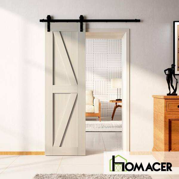 24 in. x 84 in. K-Frame Tinsmith Gray Solid Natural Pine Wood Panel Interior Sliding Barn Door Slab with Frame