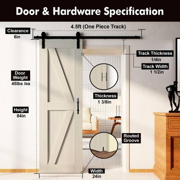 24 in. x 84 in. K-Frame Tinsmith Gray Solid Pine Wood Interior Sliding Barn Door with Hardware Kit, Non-Bypass