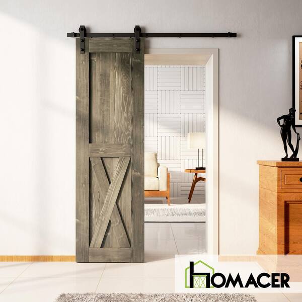 24 in. x 84 in. X-Frame Classic Gray Solid Natural Pine Wood Panel Interior Sliding Barn Door Slab with Frame