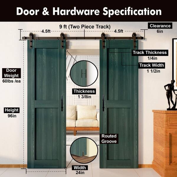 24 in. x 96 in. H-Frame Royal Pine Double Pine Wood Interior Sliding Barn Door with Hardware Kit, Non-Bypass