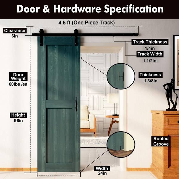 24 in. x 96 in. H-Frame Royal Pine Solid Pine Wood Interior Sliding Barn Door with Hardware Kit, Non-Bypass