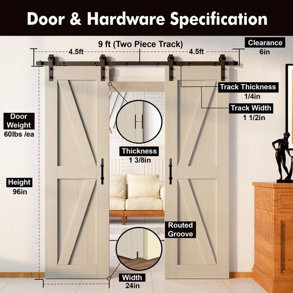 24 in. x 96 in. K-Frame Tinsmith Gray Double Pine Wood Interior Sliding Barn Door with Hardware Kit, Non-Bypass