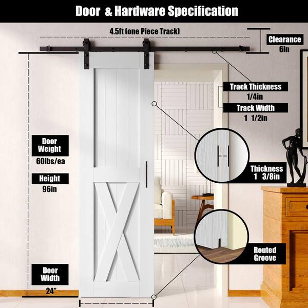 24 in. x 96 in. X-Frame White Solid Pine Wood Interior Sliding Barn Door with Hardware Kit, Non-Bypass