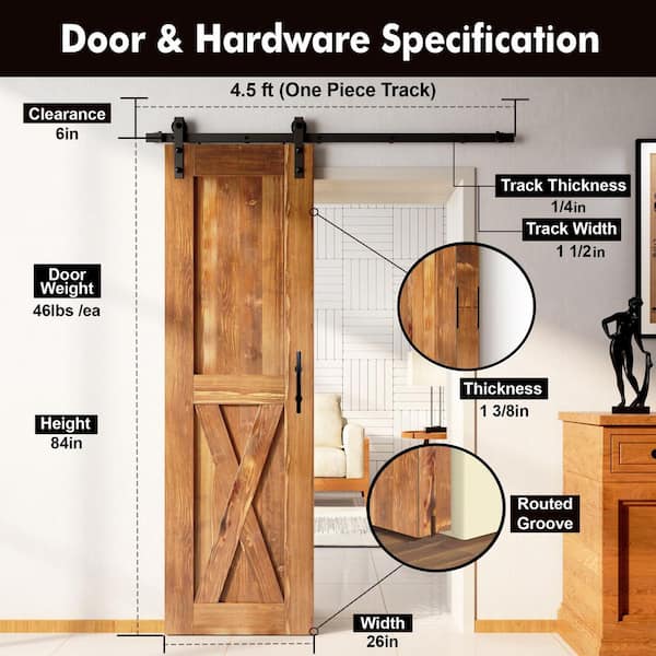 26 in. x 84 in. X-Frame Early American Solid Pine Wood Interior Sliding Barn Door with Hardware Kit, Non-Bypass