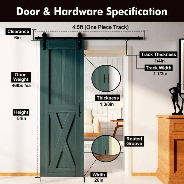26 in. x 84 in. X-Frame Royal Pine Solid Pine Wood Interior Sliding Barn Door with Hardware Kit, Non-Bypass