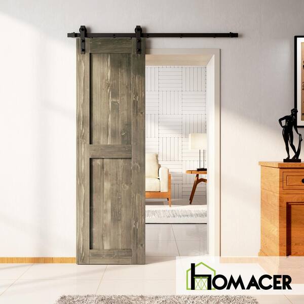 28 in. x 84 in. H-Frame Classic Gray Solid Natural Pine Wood Panel Interior Sliding Barn Door Slab with-Frame