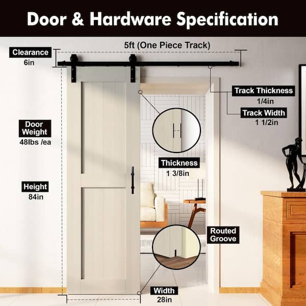 28 in. x 84 in. H-Frame Tinsmith Gray Solid Pine Wood Interior Sliding Barn Door with Hardware Kit Non-Bypass