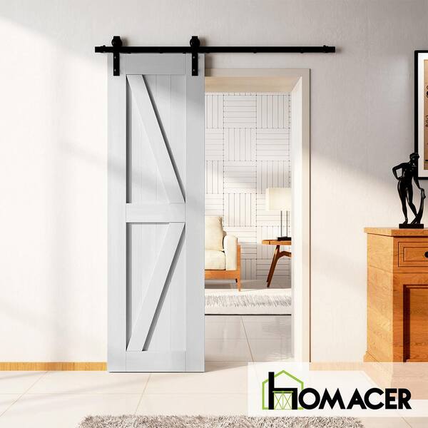 30 in. x 80 in. 5 in. 1 Design White Solid Natural Pine Wood Panel Interior Sliding Barn Door Slab Frame