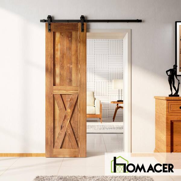 30 in. x 84 in. X-Frame Early American Solid Natural Pine Wood Panel Interior Sliding Barn Door Slab with Frame