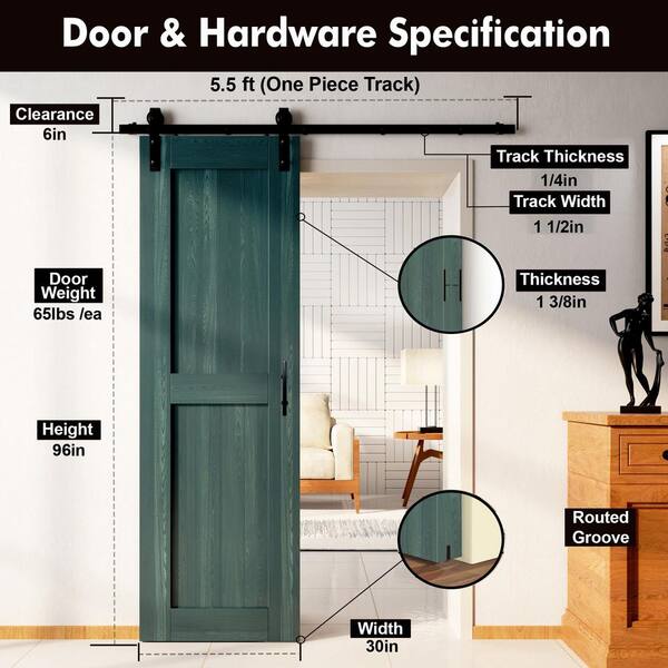 30 in. x 96 in. H-Frame Royal Pine Solid Pine Wood Interior Sliding Barn Door with Hardware Kit, Non-Bypass