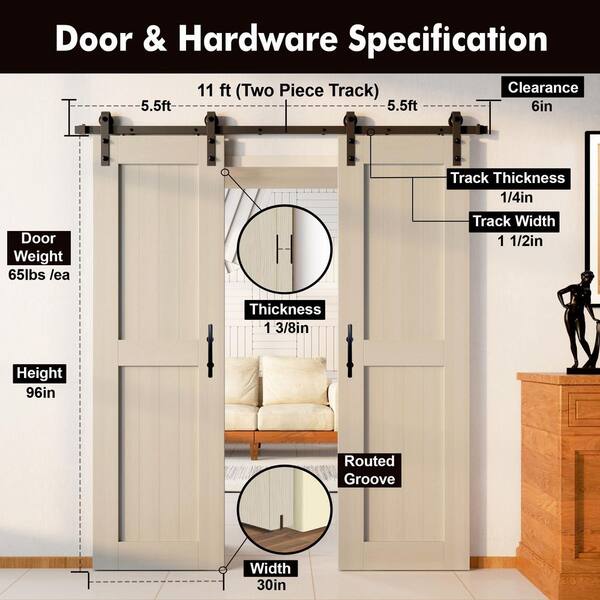 30 in. x 96 in. H-Frame Tinsmith Gray Double Pine Wood Interior Sliding Barn Door with Hardware Kit, Non-Bypass