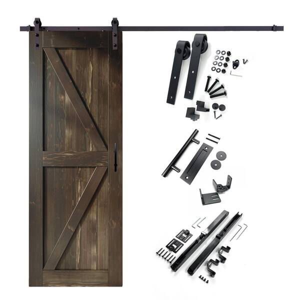 30 in. x 96 in. K-Frame Ebony Solid Pine Wood Interior Sliding Barn Door with Hardware Kit, Non-Bypass
