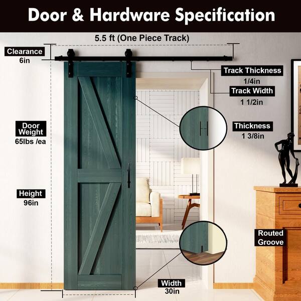 30 in. x 96 in. K-Frame Royal Pine Solid Pine Wood Interior Sliding Barn Door with Hardware Kit, Non-Bypass