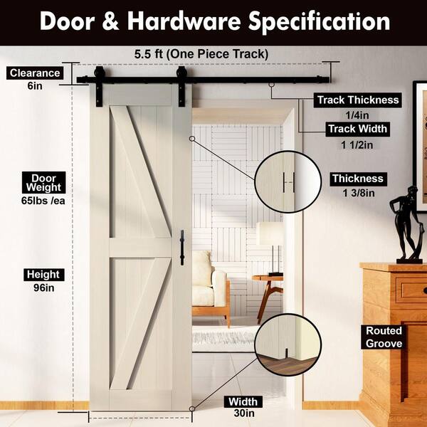 30 in. x 96 in. K-Frame Tinsmith Gray Solid Pine Wood Interior Sliding Barn Door with Hardware Kit, Non-Bypass
