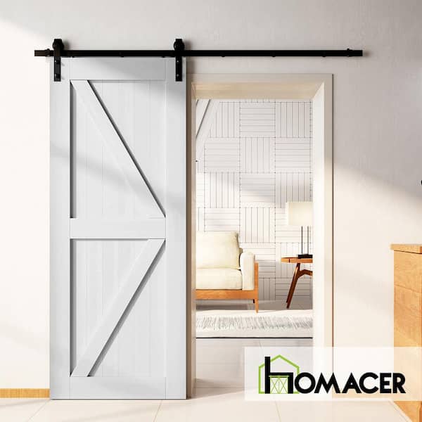 32 in. x 80 in. 5-in-1 Design White Solid Natural Pine Wood Panel Interior Sliding Barn Door Slab with Frame