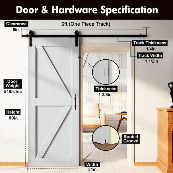 34 in. x 80 in. 5-in-1 Design White Solid Pine Wood Interior Sliding Barn Door with Hardware Kit, Non-Bypass