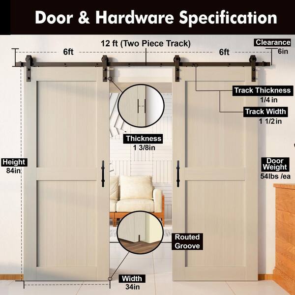 34 in. x 84 in. H-Frame Tinsmith Gray Double Pine Wood Interior Sliding Barn Door with Hardware Kit Non-Bypass