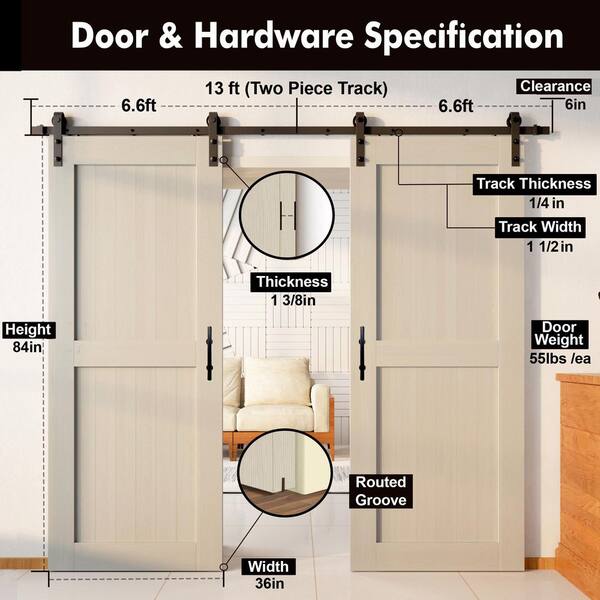 36 in. x 84 in. H-Frame Tinsmith Gray Double Pine Wood Interior Sliding Barn Door with Hardware Kit Non-Bypass