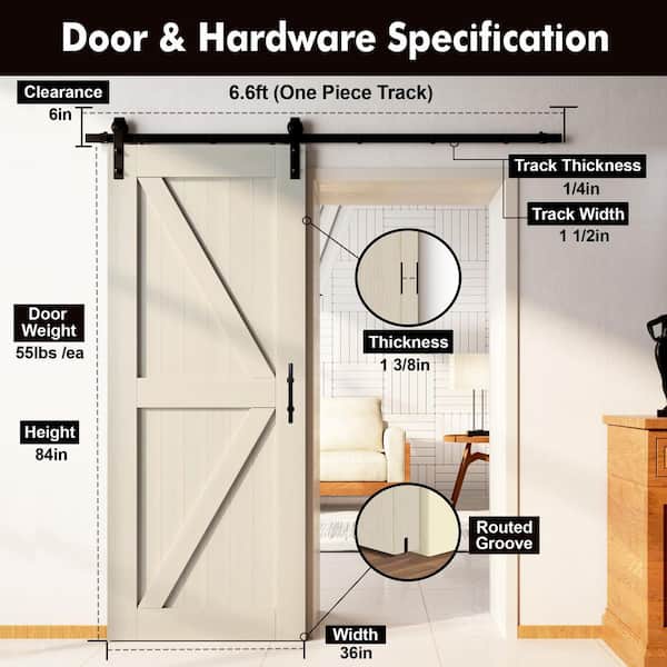 36 in. x 84 in. K-Frame Tinsmith Gray Solid Pine Wood Interior Sliding Barn Door with Hardware Kit, Non-Bypass