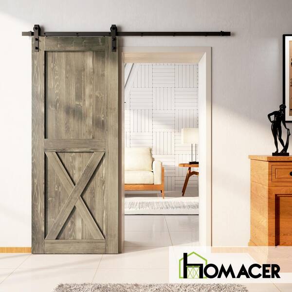 36 in. x 84 in. X-Frame Classic Gray Solid Natural Pine Wood Panel Interior Sliding Barn Door Slab with Frame