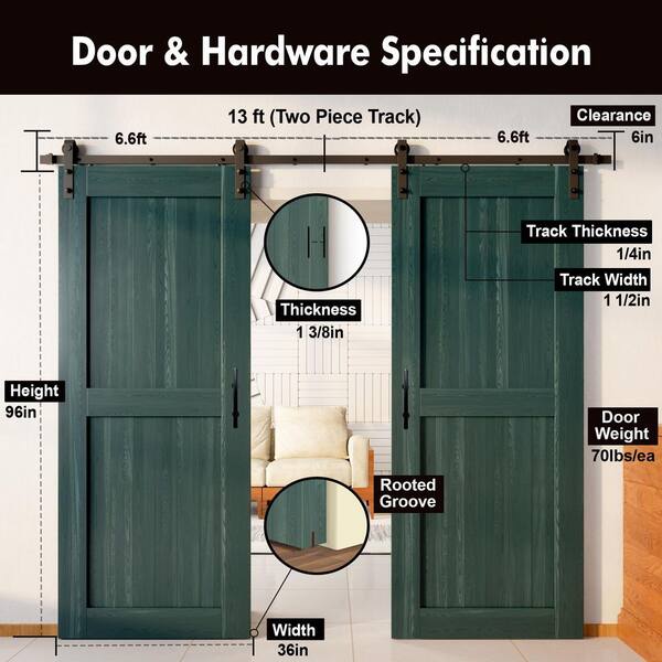 36 in. x 96 in. H-Frame Royal Pine Double Pine Wood Interior Sliding Barn Door with Hardware Kit, Non-Bypass