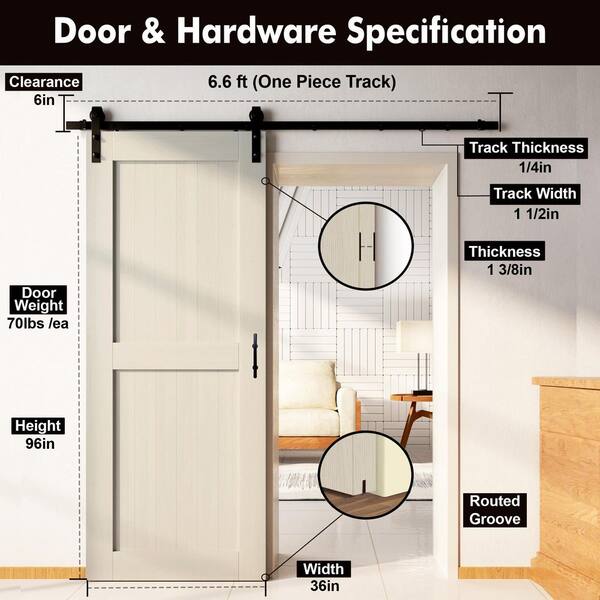 36 in. x 96 in. H-Frame Tinsmith Gray Solid Pine Wood Interior Sliding Barn Door with Hardware Kit, Non-Bypass