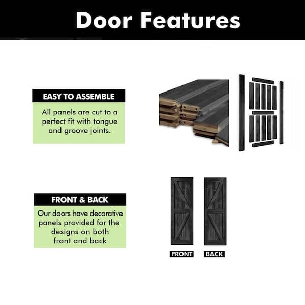 36 in. x 96 in. K-Frame Black Solid Natural Pine Wood Panel Interior Sliding Barn Door Slab with Frame