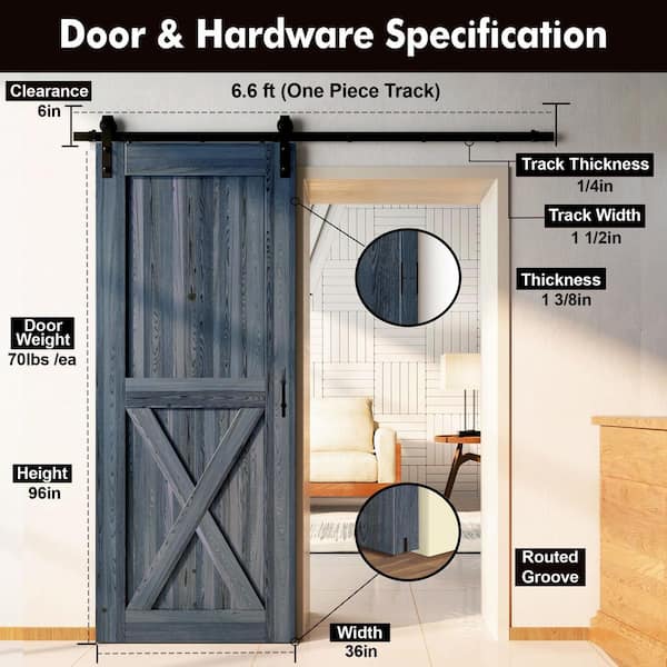 36 in. x 96 in. X-Frame Navy Solid Pine Wood Interior Sliding Barn Door with Hardware Kit, Non-Bypass