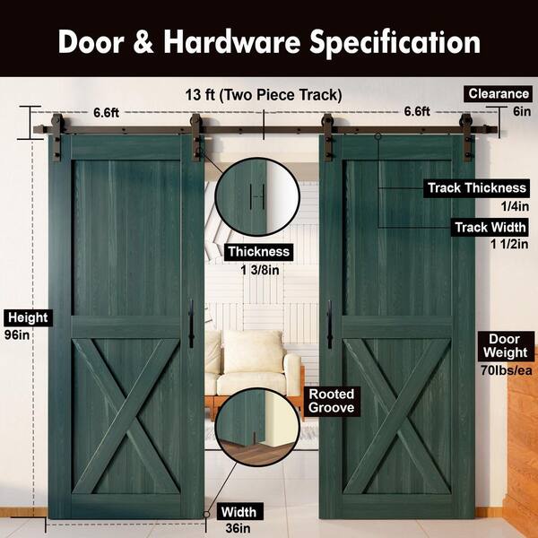 36 in. x 96 in. X-Frame Royal Pine Double Pine Wood Interior Sliding Barn Door with Hardware Kit, Non-Bypass