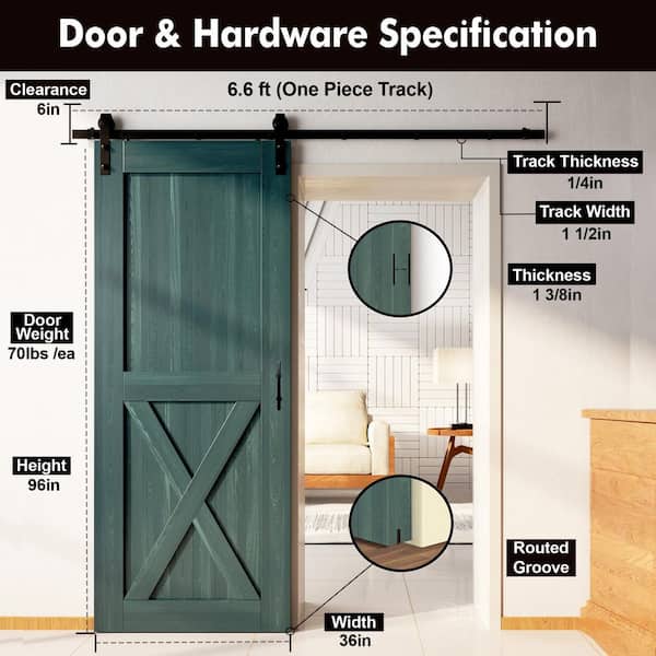 36 in. x 96 in. X-Frame Royal Pine Solid Pine Wood Interior Sliding Barn Door with Hardware Kit, Non-Bypass