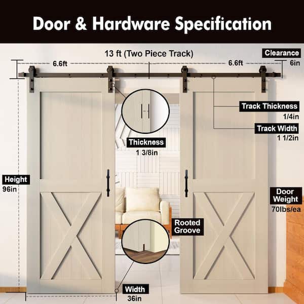 36 in. x 96 in. X-Frame Tinsmith Gray Double Pine Wood Interior Sliding Barn Door with Hardware Kit, Non-Bypass
