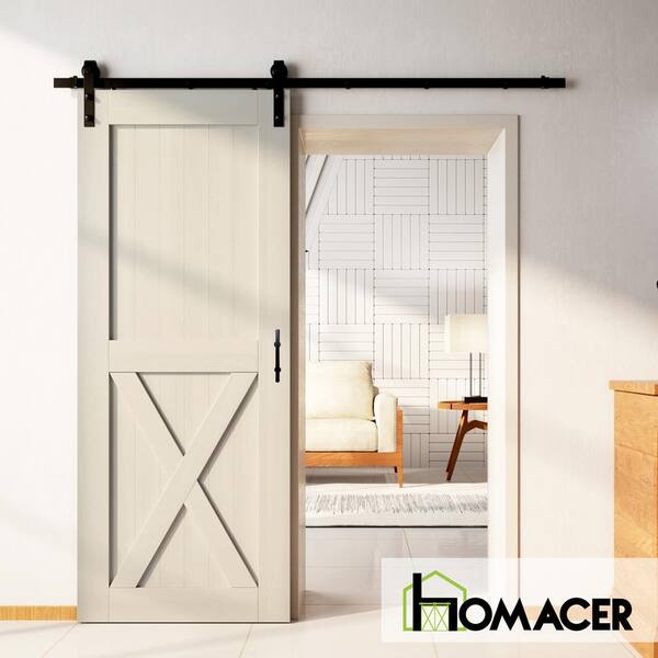36 in. x 96 in. X-Frame Tinsmith Gray Solid Natural Pine Wood Panel Interior Sliding Barn Door Slab with Frame