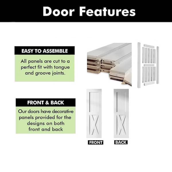 36 in. x 96 in. X-Frame White Solid Natural Pine Wood Panel Interior Sliding Barn Door Slab with Frame