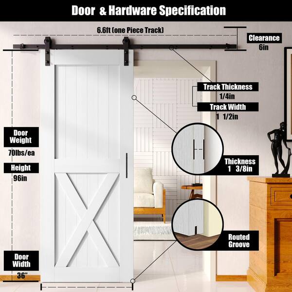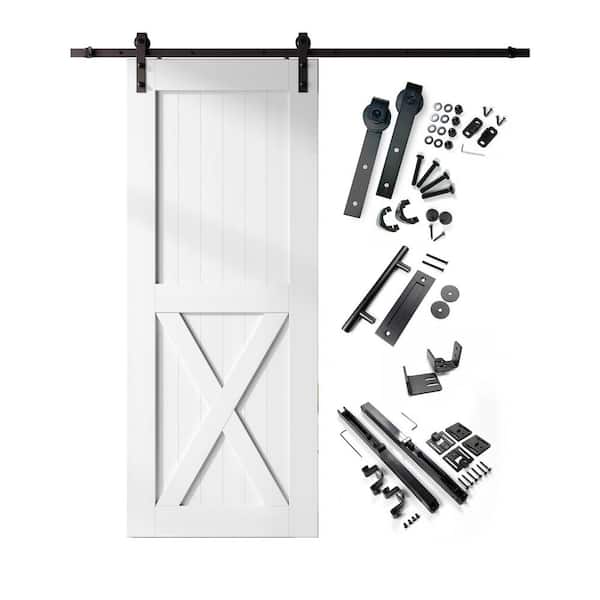 36 in. x 96 in. X-Frame White Solid Pine Wood Interior Sliding Barn Door with Hardware Kit, Non-Bypass