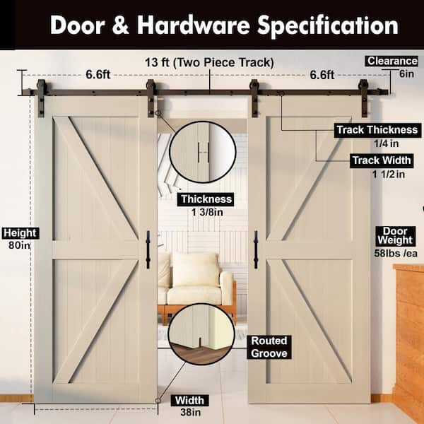 38 in. x 80 in. 5-in-1 Design Tinsmith Gray Double Pine Wood Interior Sliding Barn Door with Hardware Kit, Non-Bypass